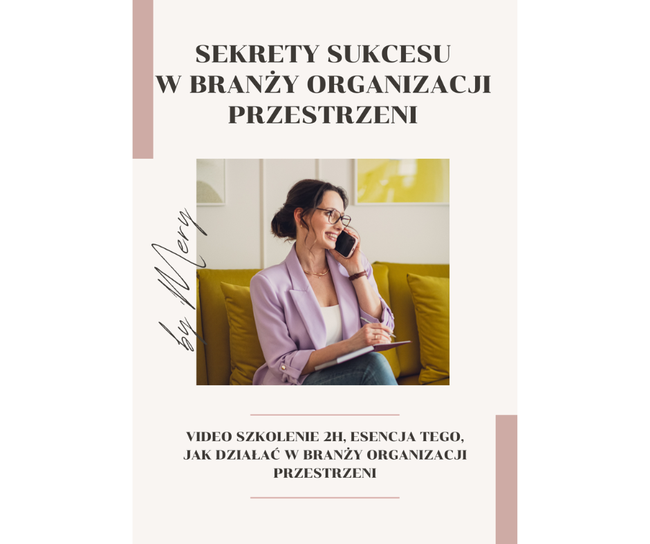 Video Szkolenie 2h „SEKRETY SUKCESU W BRANŻY ORGANIZACJI PRZESTRZENI” wprowadzi Cię w świat organizacji przestrzeni, ale również wyniesie Twoje usługi na najwyższy poziom!