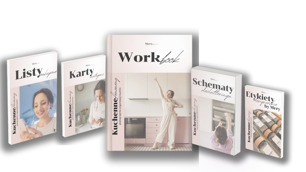 Obszerne workbooki, w których jest wszystko – kategorie, rozpisane algorytmy działania, gdy jest wątpliwość, czy coś zostawić, czy może już pora daną rzecz wyprowadzić z domu. Dodatkowo bardzo obszerna lista polecanych produktów w bardzo różnych wariantach cenowych – złoto!